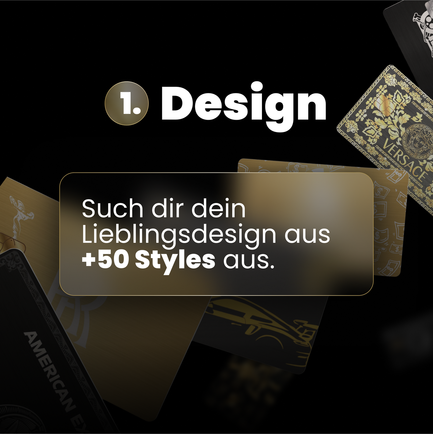 Wähl ein Design, füge deinen Namen hinzu & wir machen daraus deine persönliche Metallkarte aus Edelstahl.
