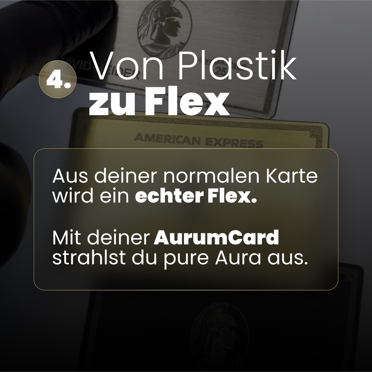 Erleben Sie den Unterschied zwischen einer gewöhnlichen Plastikkarte und der hochwertigen Aurum-Metallkarte.